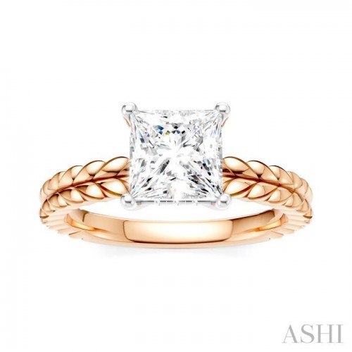 1/20 Ctw Princess Shape Round Cut Diamond Semi-Mount Engagement Ring in 14K Rose and White Gold
