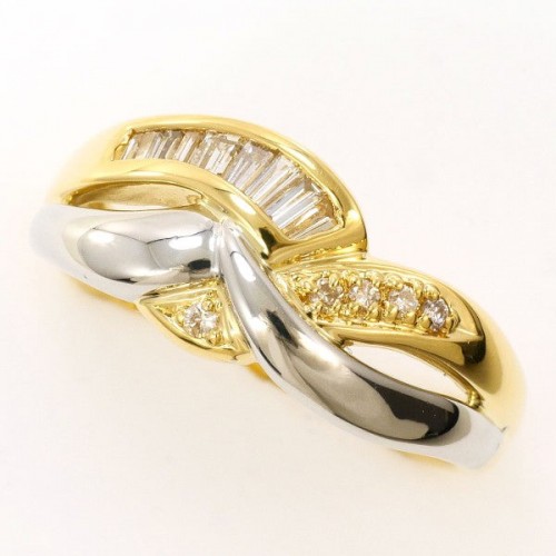PT900 Platinum Au750 Yellow Gold Diamond Ring Silver