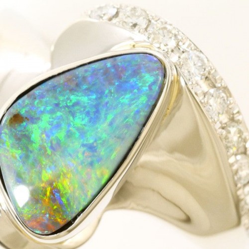 PT900 Platinum Boulder Opal Diamond Ring Blue