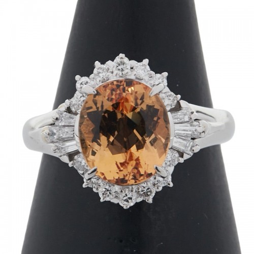 Pt900 Platinum Imperial Topaz Diamond Ring Silver Platinum 900 (Pt900)