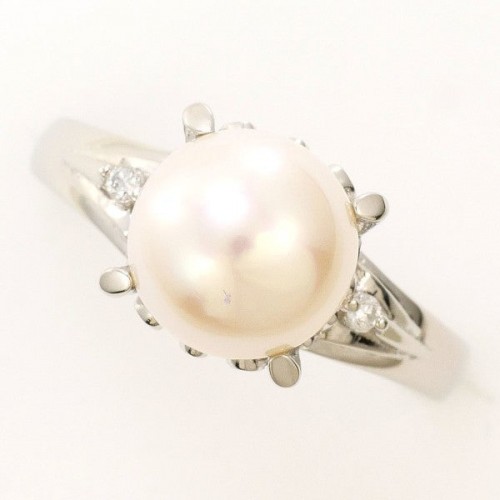 PT900 Platinum Pearl Diamond Ring Silver