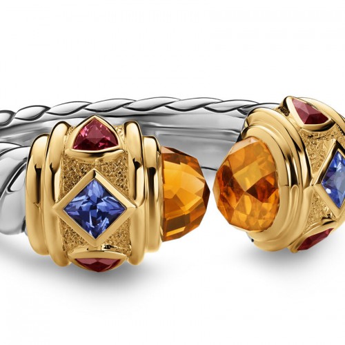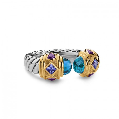 Renaissance Color Ring in Sterling Silver with 14K Yellow Gold, Madeira Citrine, Tanzanite and Rhodolite Garnet, 9.9mm, Size 6