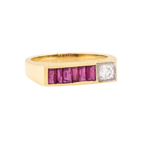 Retro 14k Diamond and Ruby Ring