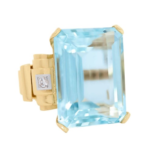 Condition: The ring is overall in excellent condition. Besides normal surface wear, there is no apparent damage to the gold setting. The aquamarine is free of chips and scratches and is securely set.