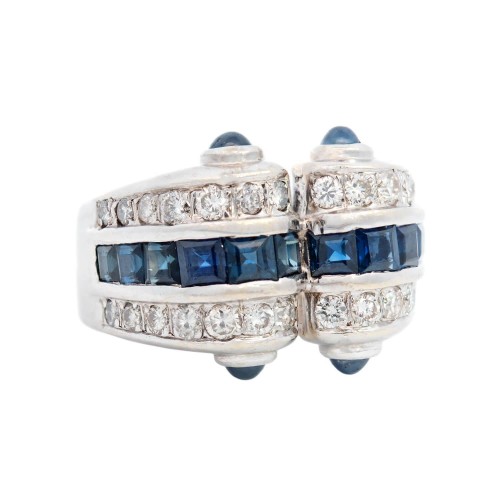 Condition: The overall condition of the ring is excellent. Besides normal surface wear, there is no apparent damage to the white gold setting or to any of the diamonds and sapphires, all of which are intact.