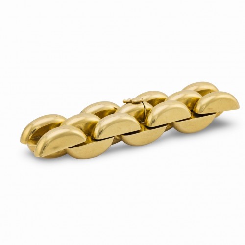 Condition: The overall condition of the bracelet is excellent. There is no apparent damage to the gold links, and both the push clasp and figure eight safety are secure and in working order.