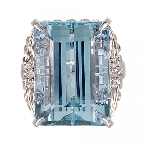SizeJP:11 SizeUS:5.5 SizeEU:51 SizeUK:L Ring width:2.1mm-17.4mm Weight:10.2g Aquamarine:13.26ct diamond:0.12ctSize guide