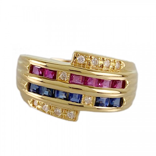 SizeJP:14 SizeUS:7 SizeEU:54 SizeUK:O Ring width: 0.1 “-0.4” Ruby: 0.52ct Sapphire: 0.51ct Diamond: 0.09ct Weight: 5.4g