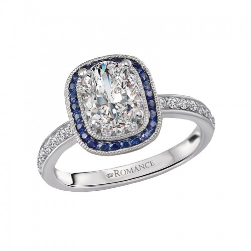 This classic and timless setting is made out of vibrant white gold. Accenting your center stone is four beautiful round brilliant diamonds on each side.
