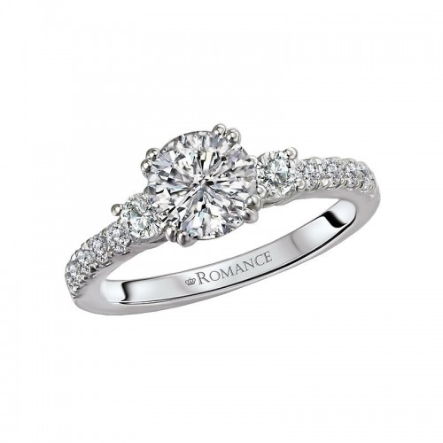 Diamond Engagement Ring in 14kt White Gold created with Swirl Designs and a peg head center. (D.05 carat total weight) This peg head SEMI-MOUNT ring comes with NO CENTER STONE as shown but it will accommodate a 6.5mm round center .