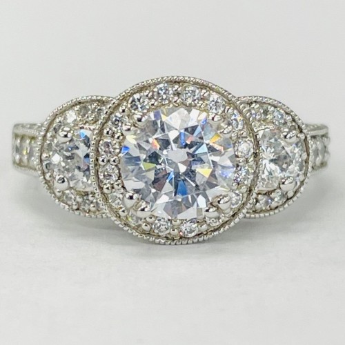 A stunning modern style setting. Featuing a all pave halo surrounding your center stone with round brilliant diamonds. With a split shank to accent this ring with even more round brilliant diamonds.