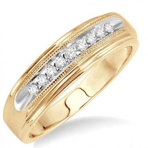 Say those magical three words to her with this alluring diamond engagement ring. Fashioned in gleaming 10 karat white gold this beautiful ring showcases a centrally staged prong set round cut diamond complemented by a delicate row of 8 shining bezel set round cut diamonds. Total diamond weight is 1/8 ctw.
