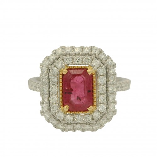 14kt white gold ruby & diamond ring with .72ct ruby and 1.75cts of diamonds