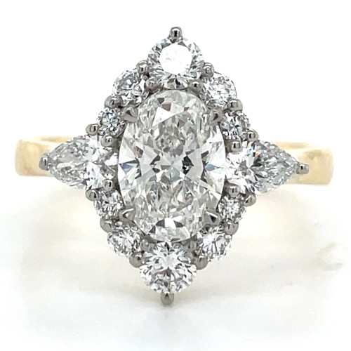 Saige – 18ct Yellow Gold 2.47ct Laboratory Grown Emerald Cut Diamond & Trillion Side Stone Engagement Ring