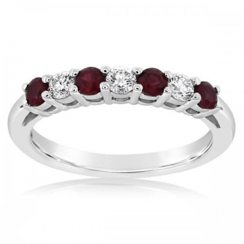 Platinum sapphire and diamond band from the Reis-Nichols Collection. The band features eight round blue sapphires weighing .40 ctw and seven round brilliant cut diamonds weighing .26 ctw. Sie 6.5 in stock now. Special order sizes also available. Pricing may vary with size of ring.