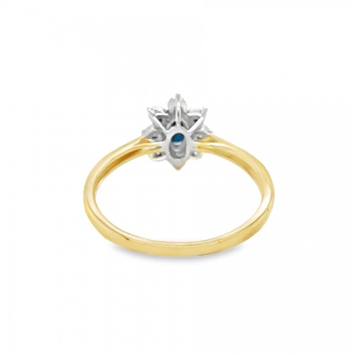 Sapphire & Diamond Oval Illusion Set Cluster Ring 9ct Gold
