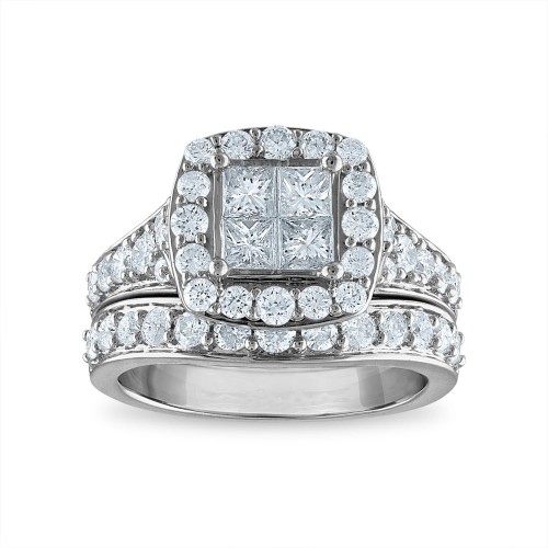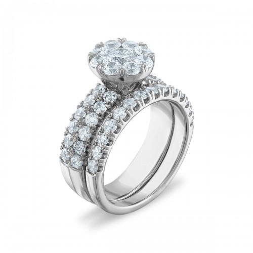 Signature EcoLove 2-1/2 CTW Lab Grown Diamond Cluster Bridal Set Ring in 14KT White Gold