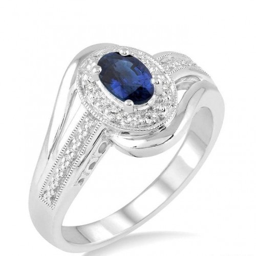 Get this gorgeous Ruby and diamond ring for her. Fabulously styled in sterling silver this ring features a centrally staged oval cut Ruby engrossed and embellished with 8 dazzling round cut diamonds with pave setting. Total diamond weight is 1/50 ctw and oval cut Ruby measures 6×4 MM.