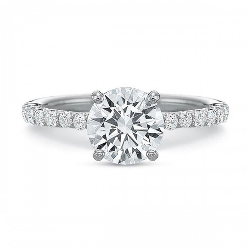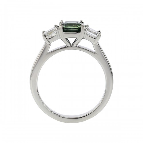 This 3-stone ring features a platinum band and a Sri Lankan sapphire as its primary gemstone, accented by two Asscher cut diamonds. This exclusive design from Schiffmans boasts a total carat weight of 2.29, making it a stunning addition to any jewelry collection.