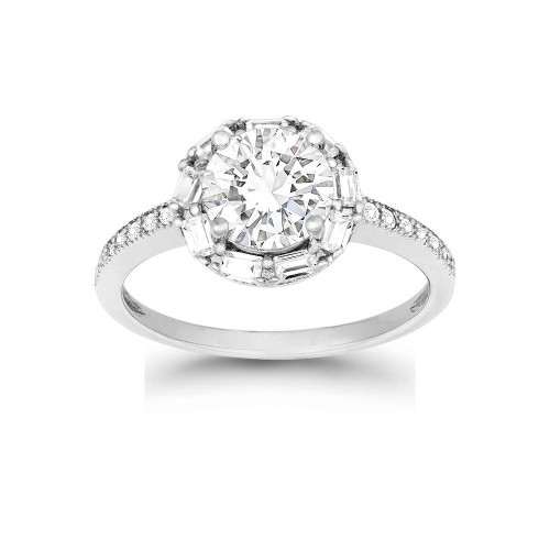 Sterling Silver 7MM Prong Round CZ With Large Square CZ Border Engagement Ring