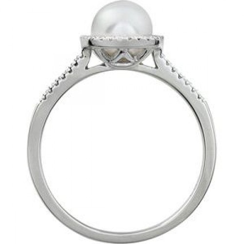 Sterling Silver Cultured White Freshwater Pearl & .01 CTW Natural Diamond Ring First
