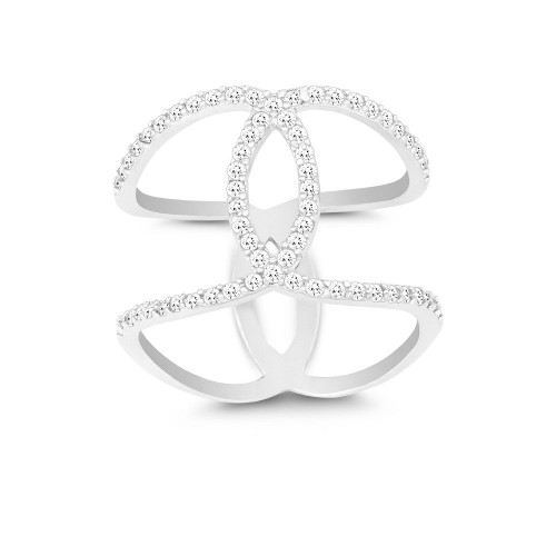 Sterling Silver Double CZ Wire with Center CZ Circle Wide Ring