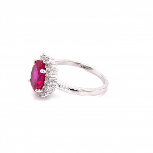 A Gorgeous CZ Ruby Cluster Ring set in Sterling Silver.