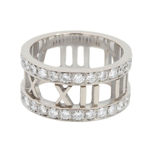 TIFFANY & CO. Estate 18k White Gold Diamond Open Atlas Ring