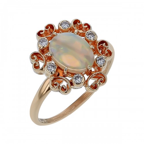 Venetian 2.00ct Mother of Pearl and 0.05ct Diamond Ring in 18K Yellow Gold Size 6.5