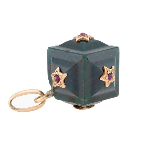Victorian 14k Bloodstone and Ruby Cube Pendant/Charm