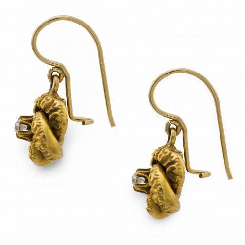 Condition: The overall condition of the earrings is excellent. Besides normal surface wear, there is no apparent damage to the gold setting, and both of the diamonds are secure and intact. The earring wires are secure and intact.