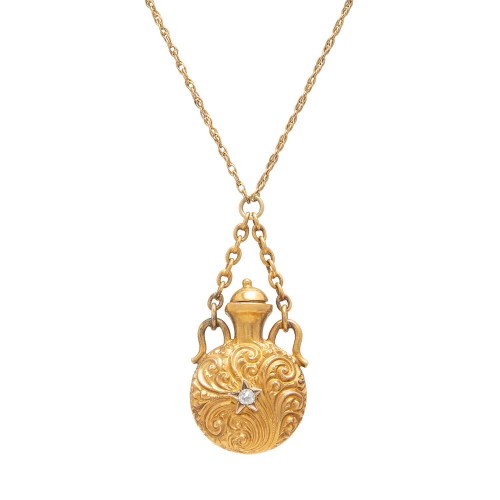 Condition: The overall condition of the watch key pendant is excellent. Besides normal surface wear, there is no apparent damage to the gold setting. The bail is intact and in good working order.
