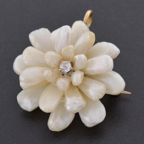 Victorian 14kt Mississippi River Pearl Flower Pin/Pendant