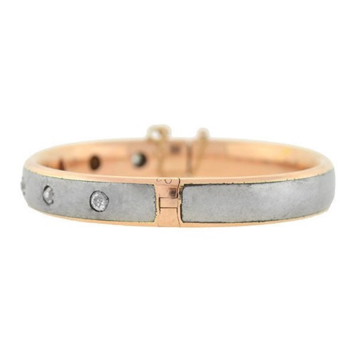 Victorian 14kt Rose Gold Steel Diamond Bangle Bracelet