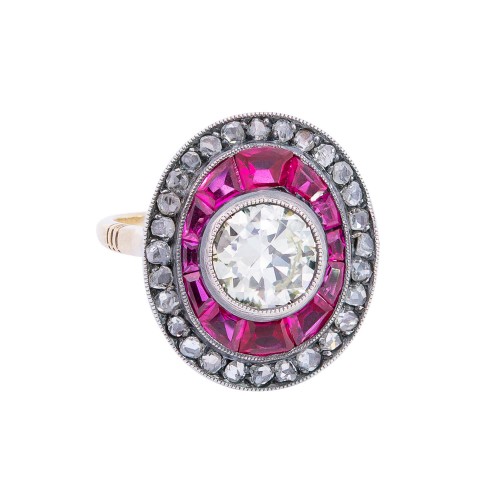 Victorian 18k Old European Diamond + Burmese No Heat Ruby Ring