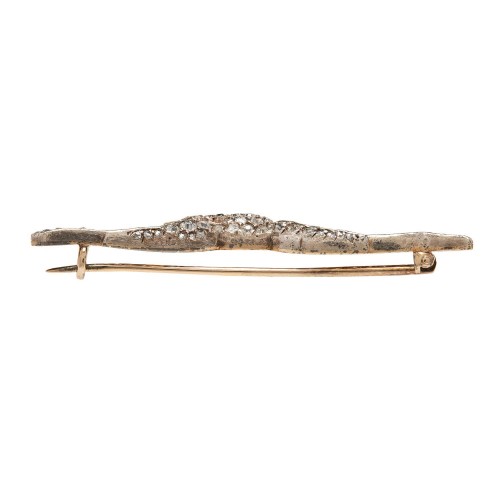 Condition: The pin remains in very good antique condition. Besides normal surface wear, there is no apparent damage to the gold and sterling setting. The pin clasp fastens securely and is in good working condition. A natural patina rests within the grooves of the sterling silver, which is normal for a Victorian era piece and adds depth and character to the design.
