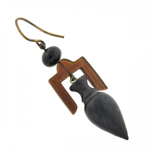 A wonderful pair of carved tortoise shell earrings from the Victorian (ca1880) era! Now a banned material, antique tortoise shell jewelry has become very collectible. These striking earrings are hand carved into a three-dimensional urn shape, which dangles freely in between large Grecian-style geometric handles at each side. At the top of each earring is a surmount comprised of a round tortoise shell bead attached to a simple earring wire. The tortoise shell displays a rich, deep brown color with subtle translucence and a lovely matte finish. Very lightweight and comfortable to wear, these Victorian earrings would make a special addition to any jewelry collection!