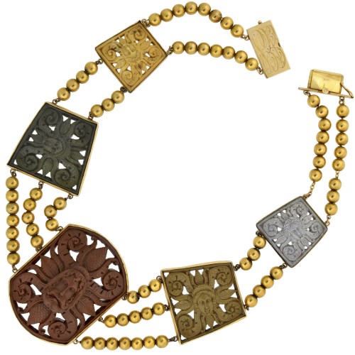 Victorian Large 14kt Hand Carved Lava Cameo Link Necklace