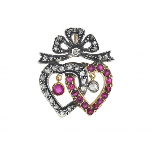 Victorian Rock Crystal, Ruby, Garnet + Emerald Insect Pendant