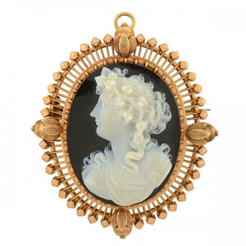 Now a banned material, Antique tortoise shell jewelry has become very collectable. These earrings, in particular, are simply wonderful and from the Victorian (ca1880) era! Each begins with a horizontal bar that is ornately carved and flares out on each end. A 14kt yellow gold earring wire attaches to the link, hanging from a ring which is riveted through the center of the bar. Dangling from the bottom of the flared bar link is a large tortoise shell ball that has a cone-shaped topper. The tortoise shell is fairly dark in color but also has wonderful hues of caramels and ambers. These stunning earrings are simply beautiful and would make a great addition to any collection!