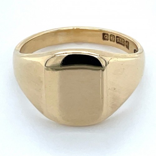 Timeless 9ct yellow gold signet ring in a vintage rectangular style. Customise it with an engraved initial for a unique touch.