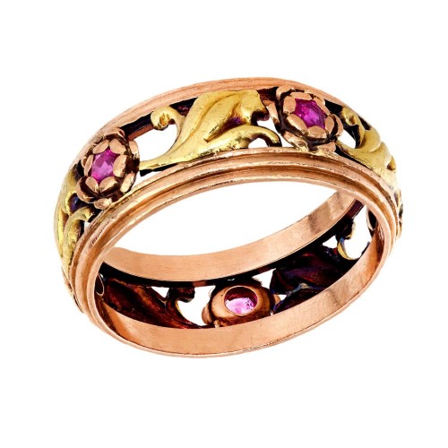 Shakudo is the use of mixed metal alloys, and was originally used in Japanese armor and swords. Artisans would sometimes remove the Shakudo plaques from the armor and incorporate them into jewelry or art. It has become very collectible and quite unusual.