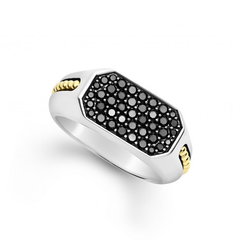 Sterling silver with 18-karat yellow gold • Pavé-set diamonds, 0.18 total carat weight • Ring, 11.7mm